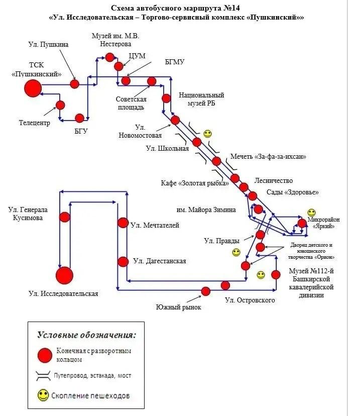С 25 марта в Уфе скорректирован путь следования автобусов №14, курсирующих между микрорайоном «Серебряный ручей» и торгово-складским комплексом «Пушкинский».