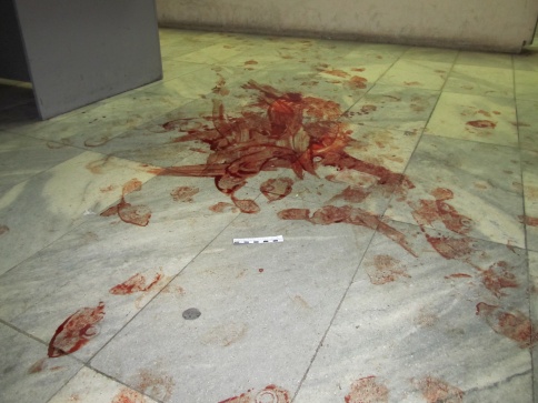 Прибывшие сотрудники транспортной полиции доставили дебоширку в комнату для задержанных, где она напала на полицейского, нанеся ему удар по голове с зажатым в руке сотовым телефоном. После того как ей на руки надели наручники дама умудрилась еще несколько раз ударить полицейского.