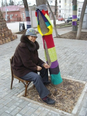 ТемаУфа, 28 ноября. В Уфе несколько деревьев в сквере по улице Карла Маркса «оделись» в яркие вязаные свитера. Как стало известно TemaUfa.ru, автором оригинального проекта стал директор Музея современного искусства Василь Ханнанов, который увидел «одетые» деревья в Москве.