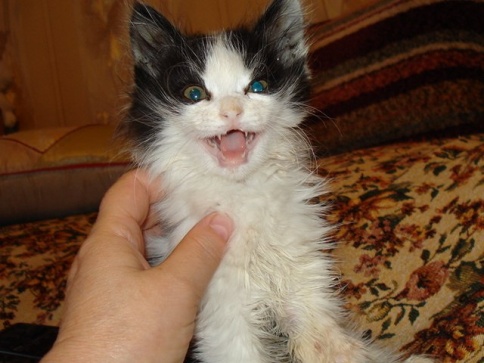 …Прошло полтора месяца. О страшной трагедии напоминают только ранки от штифтов и не до конца еще затянувшаяся рана со швами на локотке. Малыш бегает и шалит, как и все котята его возраста.