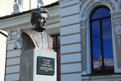Бронзовая скульптура Раилю Кузееву установлена на газоне, а бюст Льву Гумилеву расположен в стенах здания.