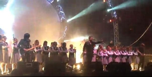 Шоу музыкантов всегда сопровождается видеорядом и лазерными спецэффектами. Кроме того, артисты споют на сцене известный хит «Another brick in the wall» с детьми из Уфы.