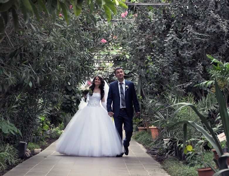В уфимском лимонарии прошла первая свадебная церемония. Молодожены Азат и Айсылу выбрали райский уголок с экзотическими растениями для того, чтобы заключить супружеский союз.