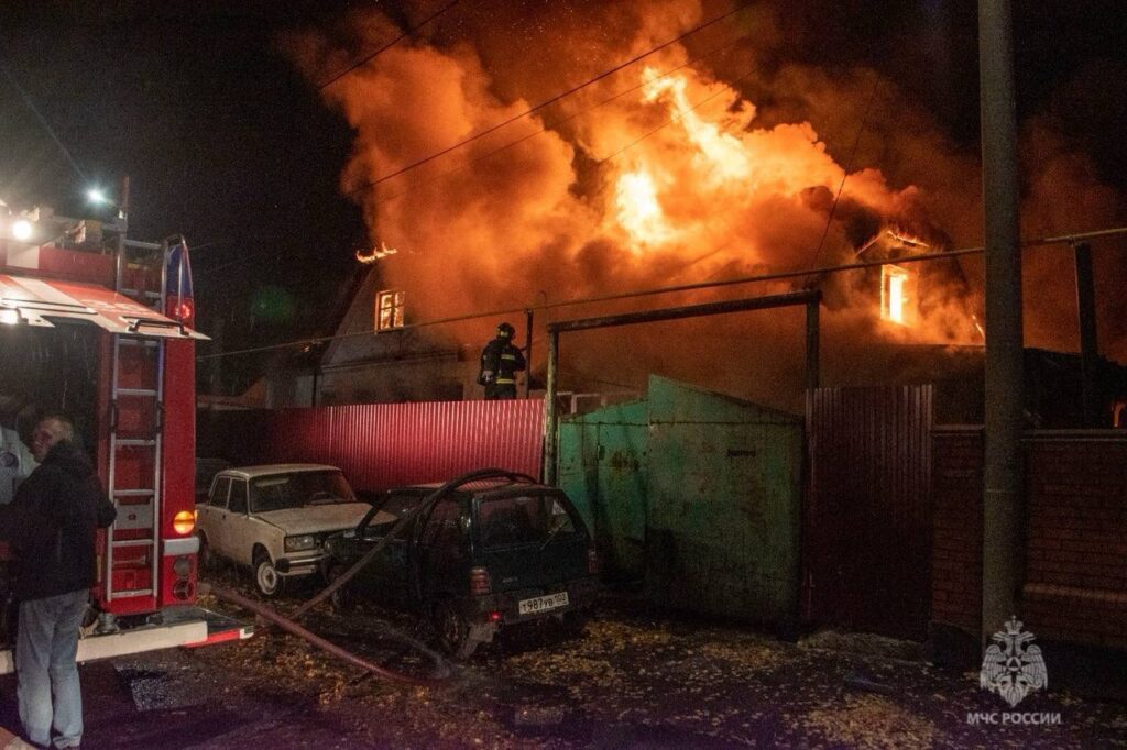 В Салавате на улице Пушкина произошёл пожар, в результате которого сгорели семь автомобилей и дом. Огонь возник в кирпичном здании и быстро распространился на припаркованные машины.