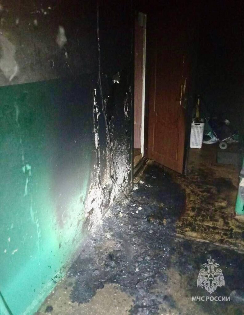 Огонь повредил детскую коляску, стены и потолок в квартире. Пожар удалось локализовать до прибытия пожарных. Причины возгорания устанавливаются.
